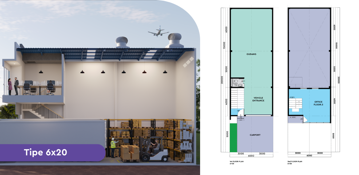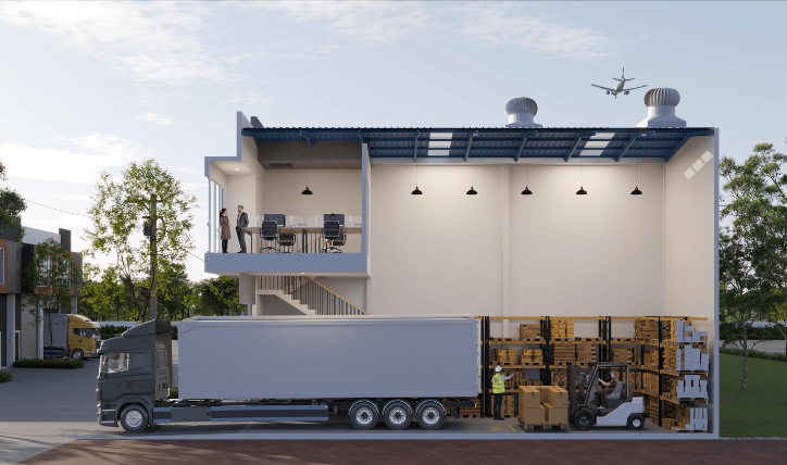 Sebagai distributor atau pengusaha, gudang adalah fasilitas pendukung penting yang dapat menunjang efisiensi rantai pasokan logistik sebelum sampai ke tangan pengguna akhir. Dengan memanfaatkan tipe gudang 2 lantai ini, kamu dapat memaksimalkan bisnis dalam satu kawasan yang terpadu sebagai kantor & tempat penyimpanan dalam 1 bangunan.